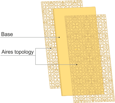 A capacitor is formed by the device’s two active surfaces, which are made of Aires topological circuits which have been superimposed using Immersion Gold technology and which are separated by a base made of a dielectric material.