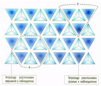 Рис. 14. Расположение структурных элементов в ячейке воды. Наименее способные к внешнему взаимодействию грани с нулевым общим зарядом образуют оболочку ячейки.