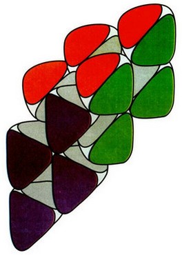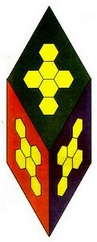Рис. 9. Циклическое образование из шести "квантов" - "снежинка". Три грани, направленные к наблюдателю, расположены в одной плоскости, образуя супергрань. Наложение этих плоскостей с перекрестным положением каждой грани невозможно.