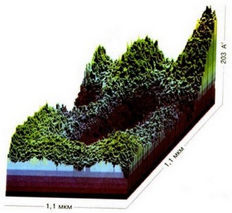 Рис. 16. Изображение структуры воды, полученное на контрастно-фазовом микроскопе. Видны макро-образования размером до одного микрона, которые составлены из структурных элементов S = 1,1 х 1,1 мкм , h = 203 А°.